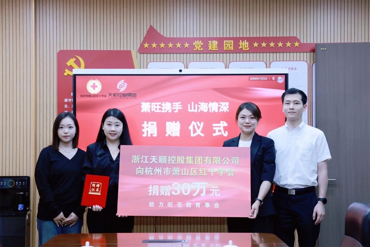 为进一步做好对口帮扶相关工作,5月8日下午,浙江天顺-旺苍教育帮扶项目捐赠仪式在萧山区红十字会举行。萧山区红十字会党组书记、专职副会长曹彦,萧山区红十字会党组成员、副会长方张扬,浙江天顺控股集团有限公司副总裁韩梦莹参加。 萧...